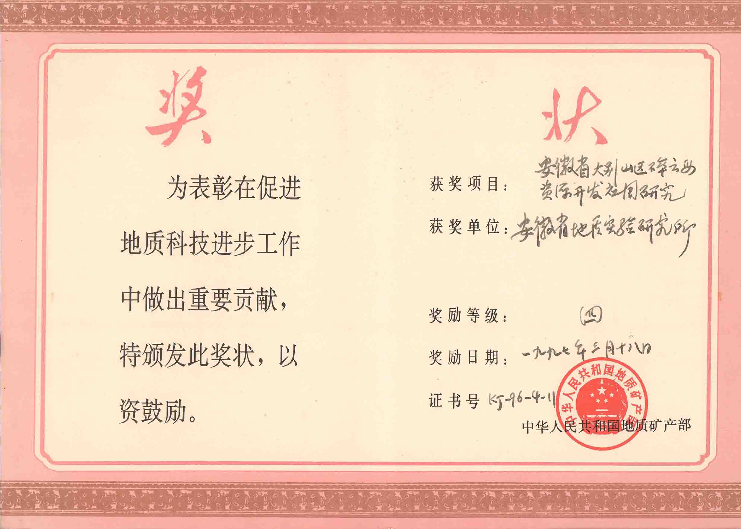 安徽省地质矿产勘查局(地质科技进步三等奖) 安徽...